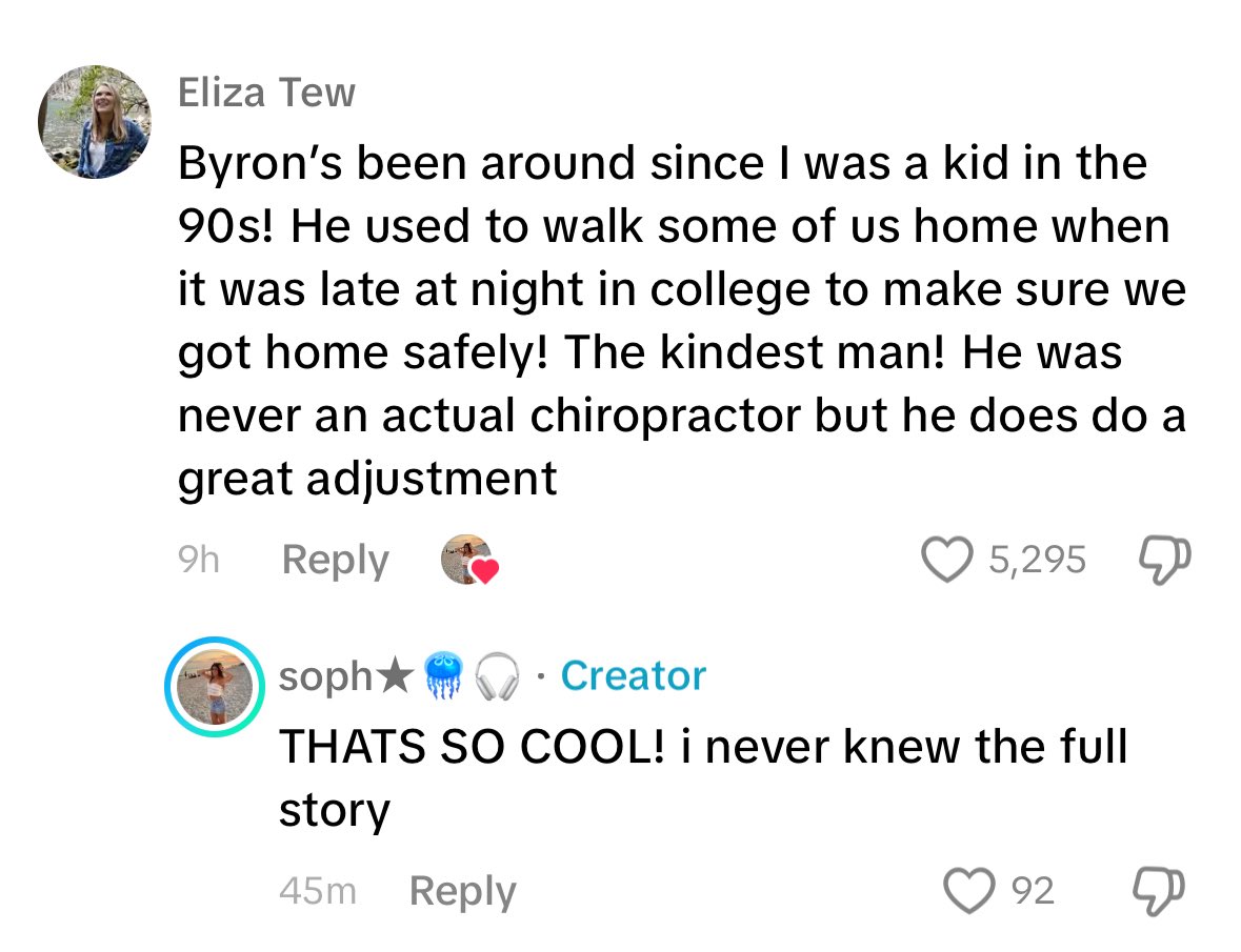 Most people see homelessness and write it off. Byron, a guy who’s been living on the streets of Charleston for 30 years, turned his personality, story, and community trust into an unconventional kind of influence. He tells people he’s a retired chiropractor (truth optional) and has become known for helping folks, walking people home at night, and being visible in the community.