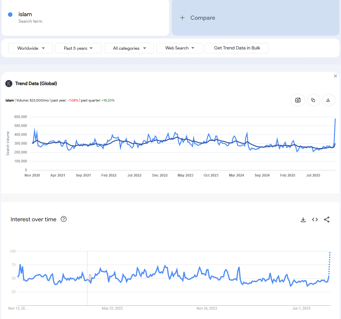 - “Islam” — steady climb over 12 months