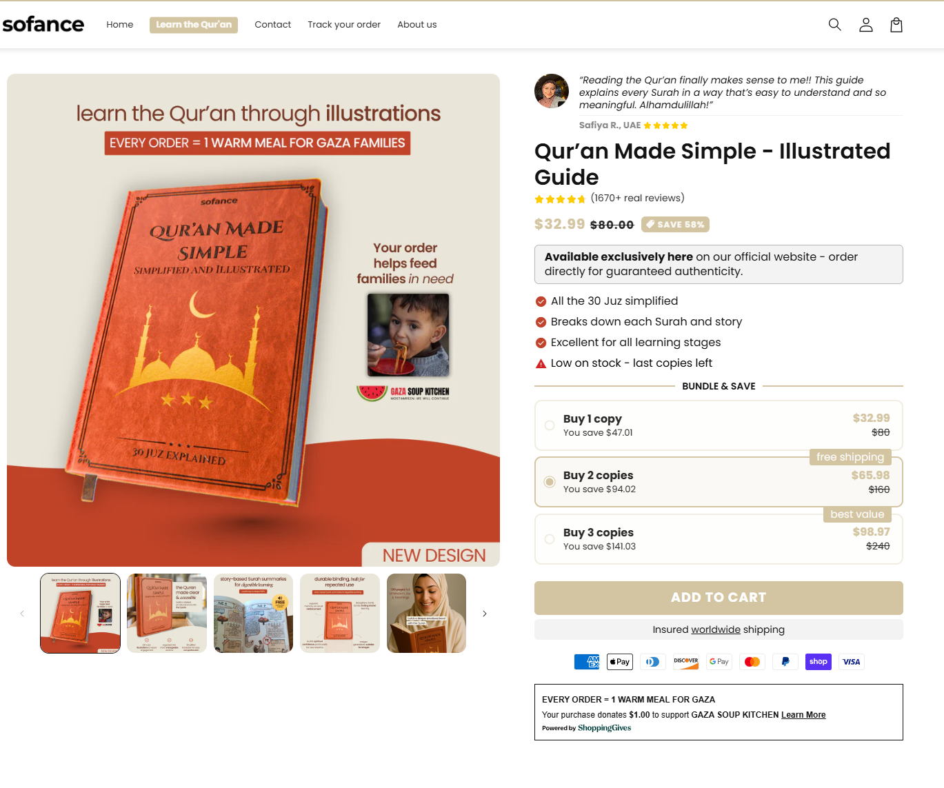 Scrolling deeper → the link goes to Sofence.com, straight to a clean landing page for a simplified and illustrated Qur’an.