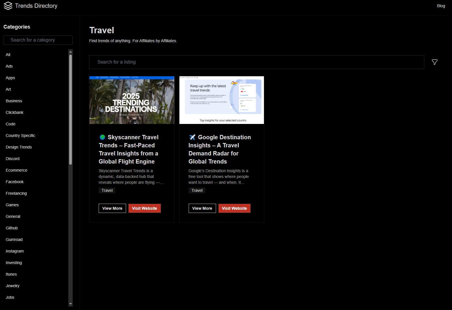 Step 1: Pick a Niche Use AllTrends.site, choose travel and find the options for travel trends.